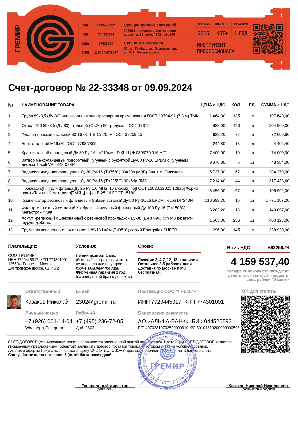 Датой оплаты считается день поступления средств на расчетный счет ООО «ГРЕМИР». Фиксация оплаты производится по будням в 10:00 по банковской выписке.